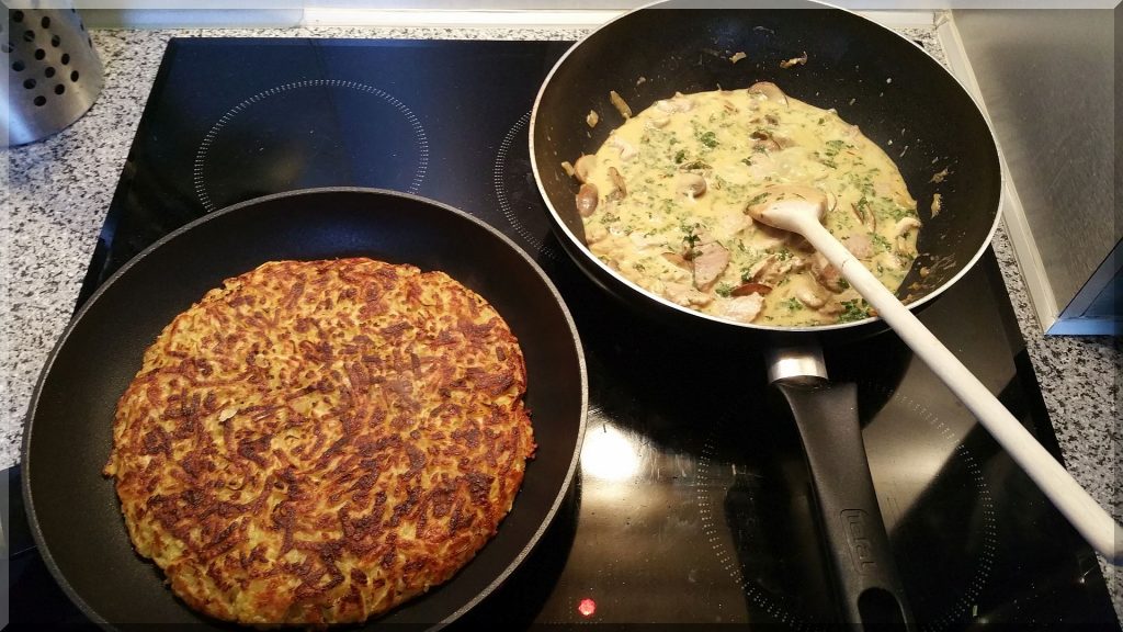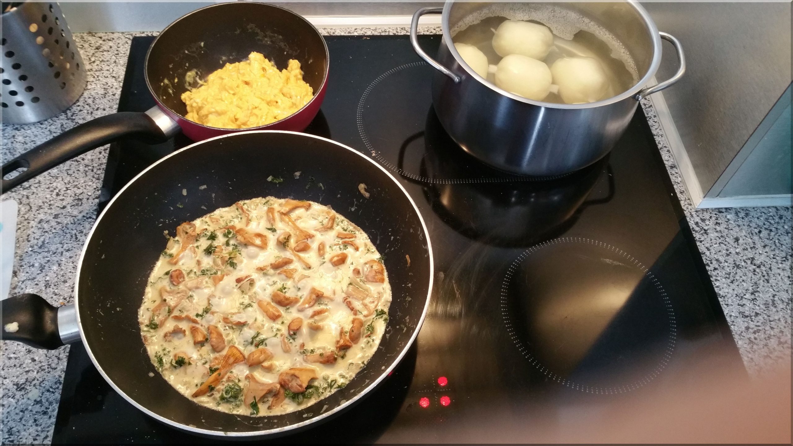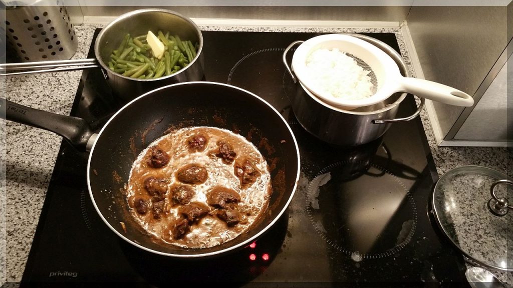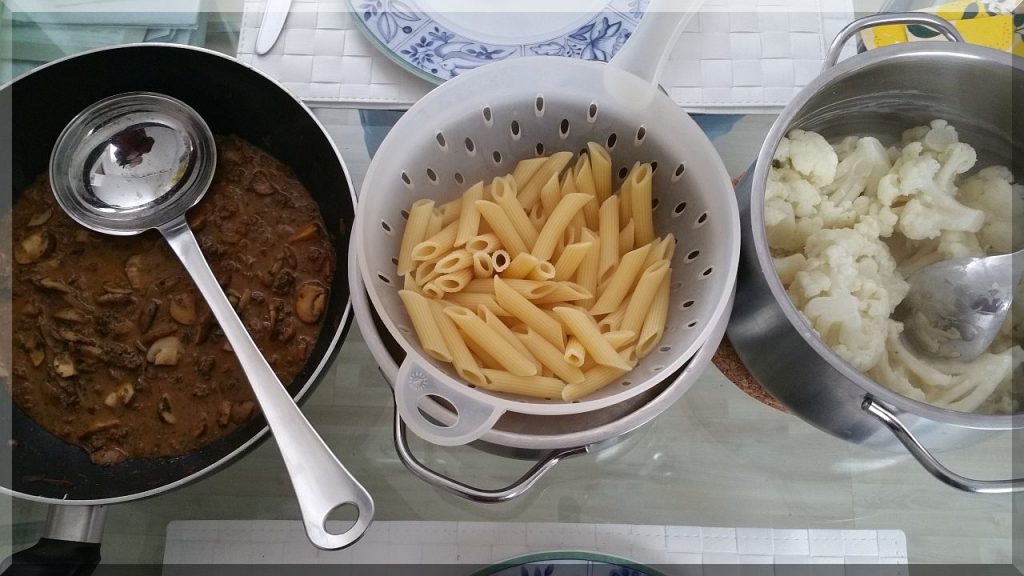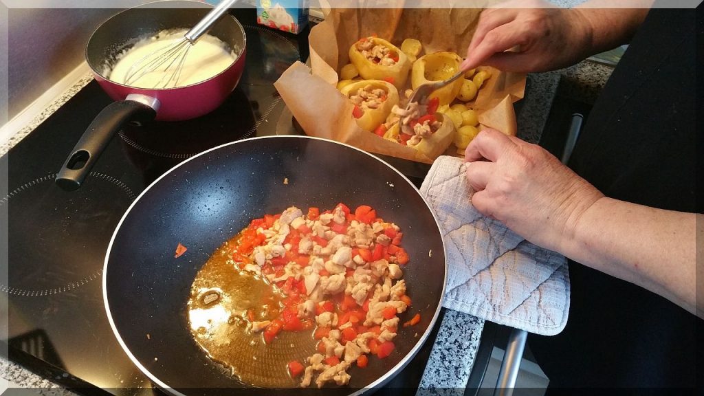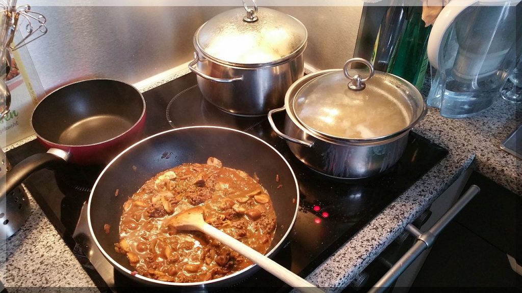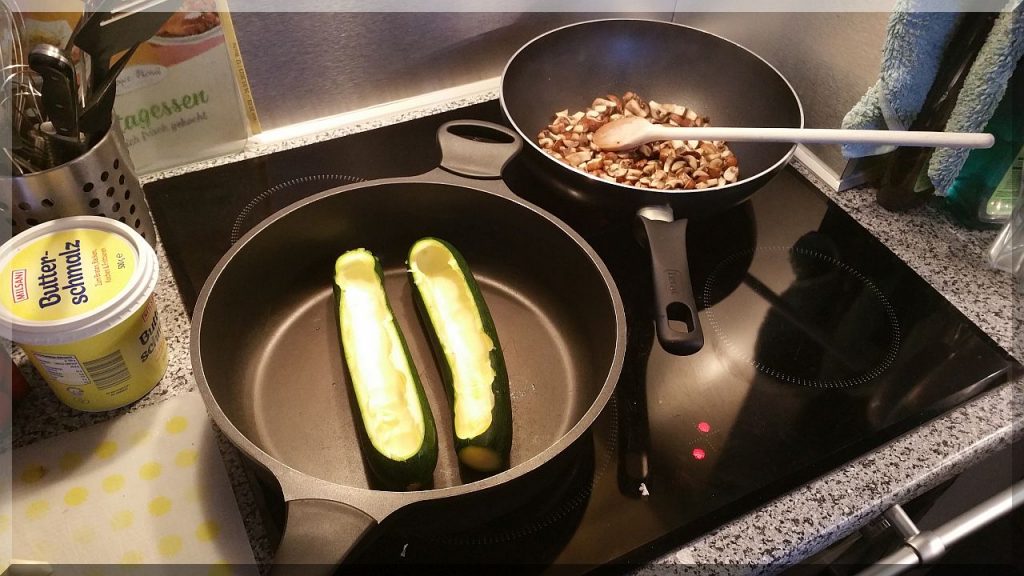 17 Uhr – Marianne hat bei Chefkoch ein fleischloses Rezept entdeckt, das wir uns nun zubereiten werden: