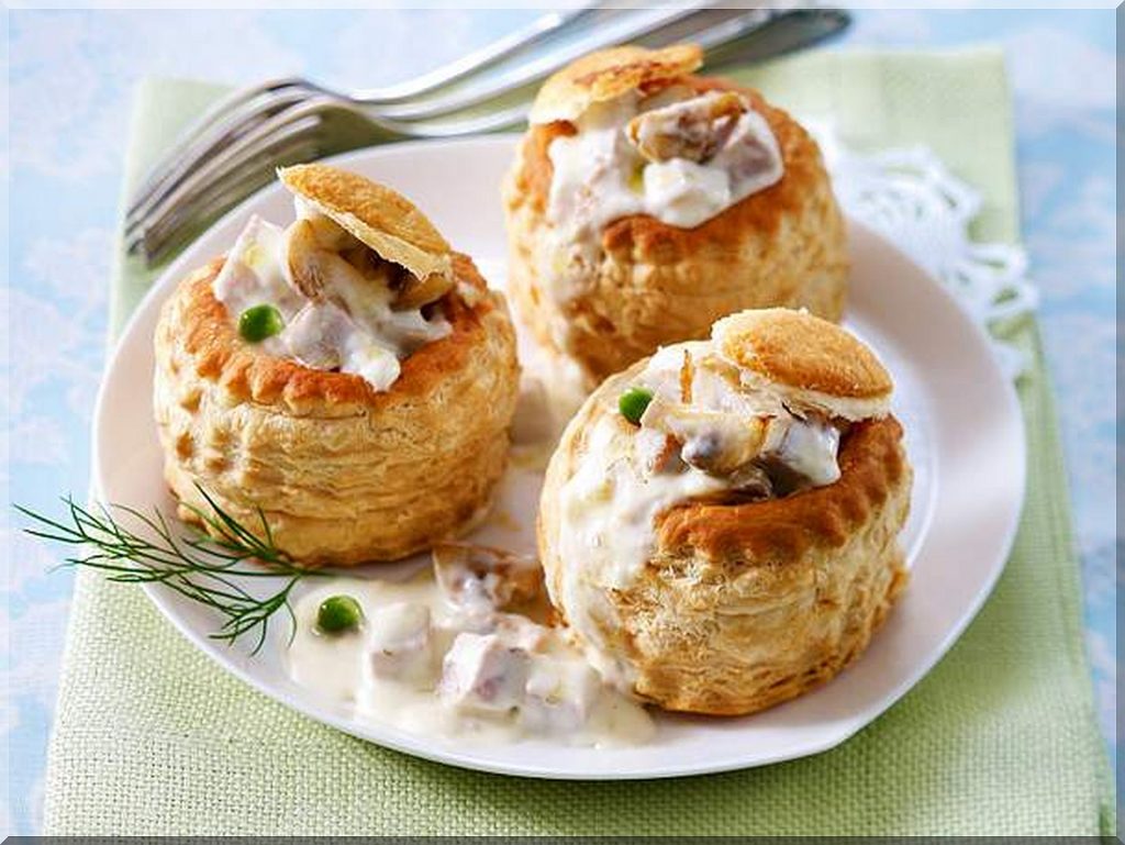 Zwiebelwürfel in Butterschmalz anbraten, dann die Hühnerleber dazugeben. Mit etwas Gemüsebrühe ablöschen, würzen und mit 100 ml Sahne verfeinern.