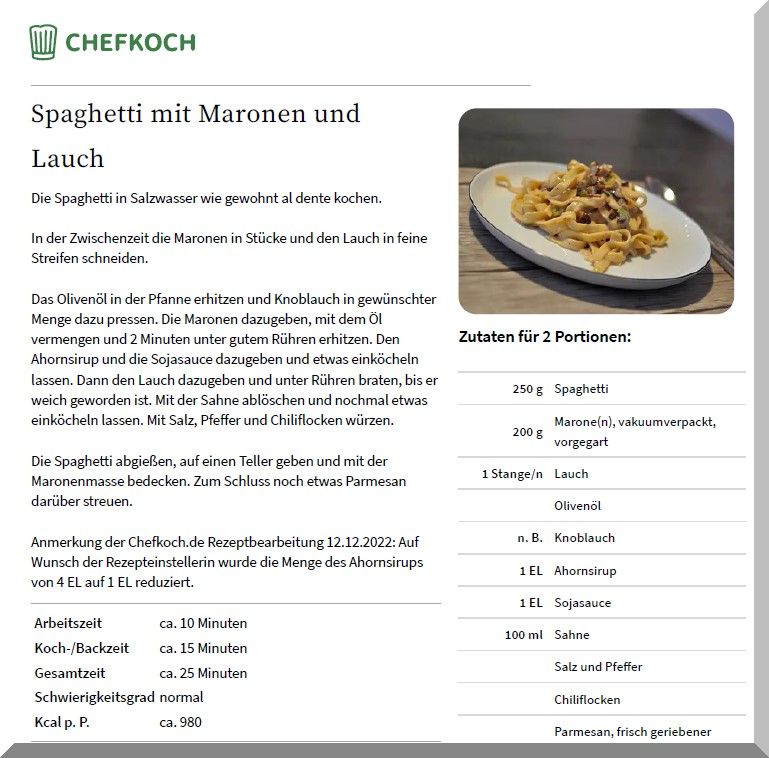 Bereits ausprobiert und für wiederholungswürdig oder sogar als Sonntags- oder Festessen für würdig befunden: