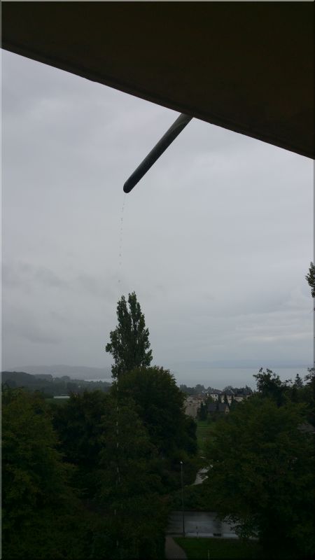 9 Uhr – Landregen zieht über den See. Ich erlebe einen Rückfall und bin körperlich extrem ausgelaugt, obwohl ich heute noch keine Anstrengungen hatte. Nur Flure auf- und ablaufen, sonst nichts.