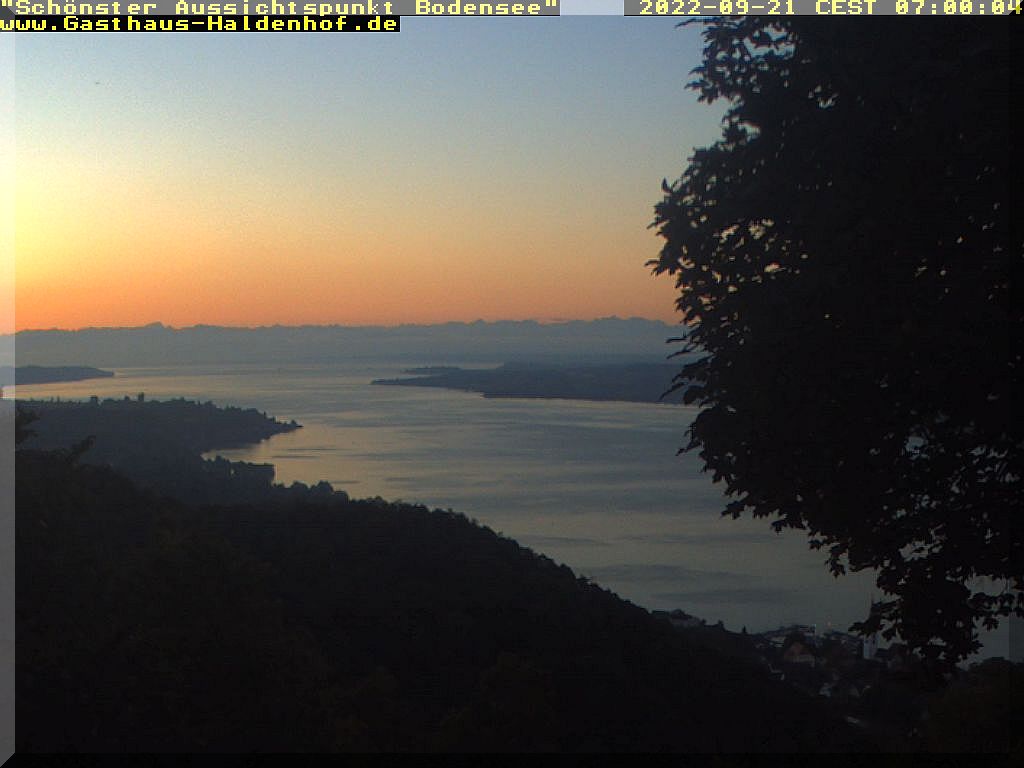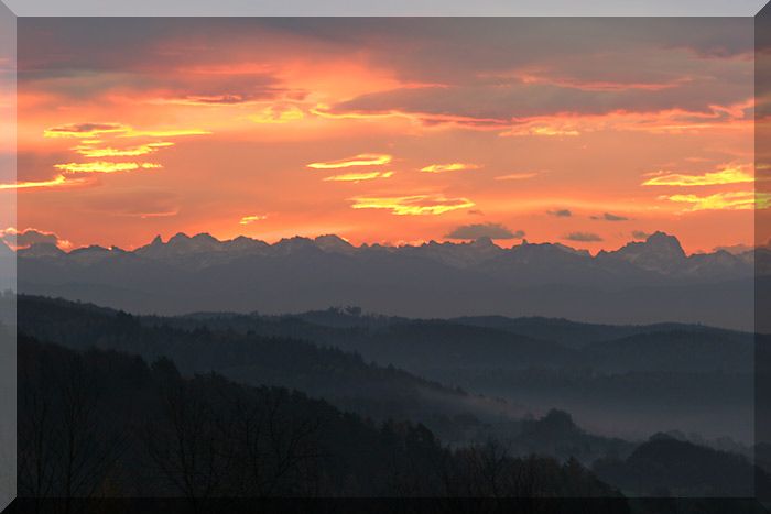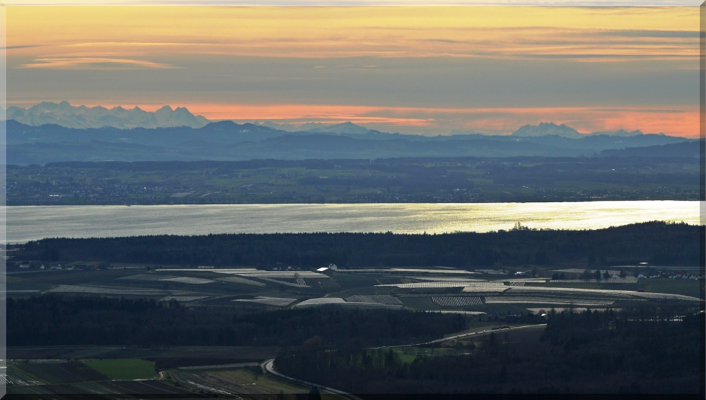 6:40 Uhr – Die Gipfel des Bregenzer Waldes leuchten schon wieder zartrosa. Das kann erneut ein sehr schöner Tag werden.