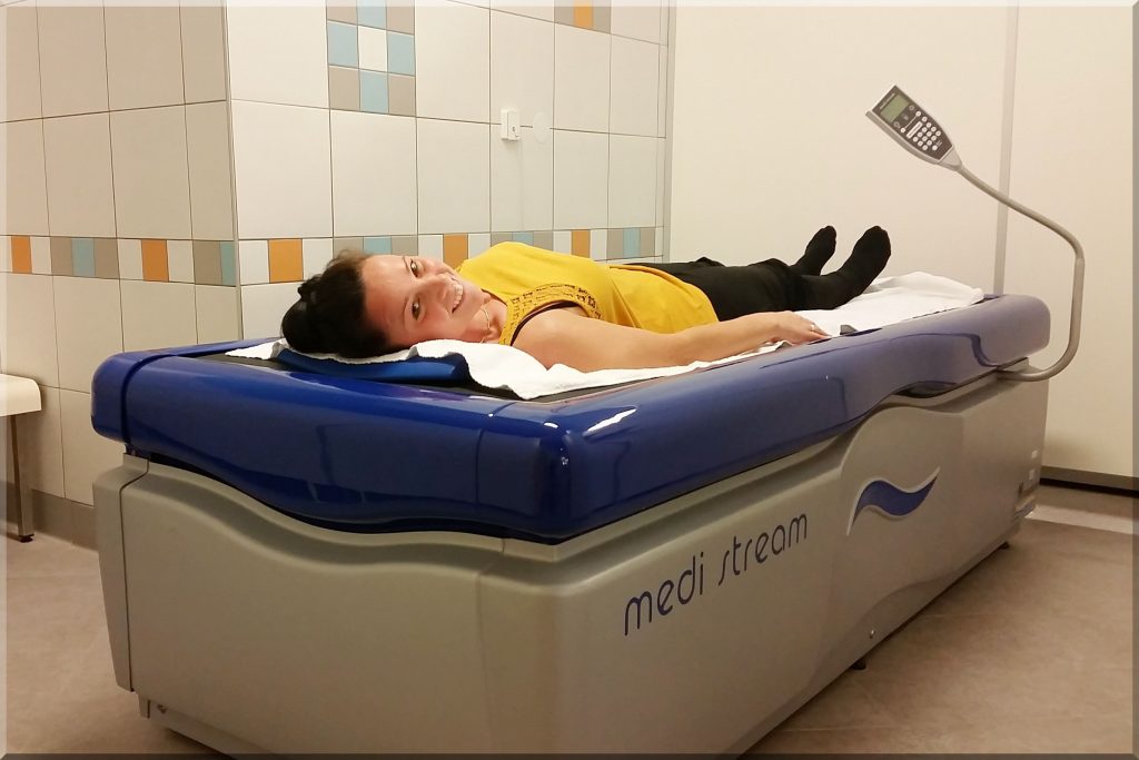 9:12 Uhr – Die Sonne setzt sich durch und erfreut auch die Gemüter der Insassen der Reha-Klinik. Ich gehe gleich zur Hydrojet Massage.
