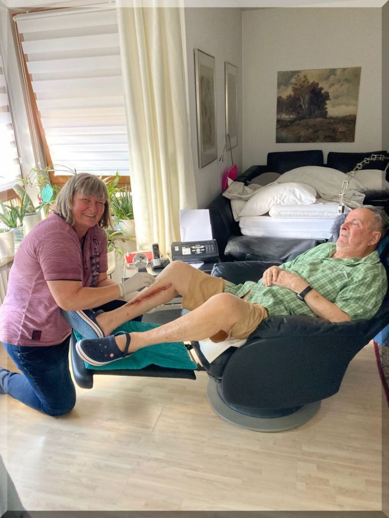 ………. kam mich zuhause jeden Tag besuchen und hat den Verbandswechsel vorgenommen: