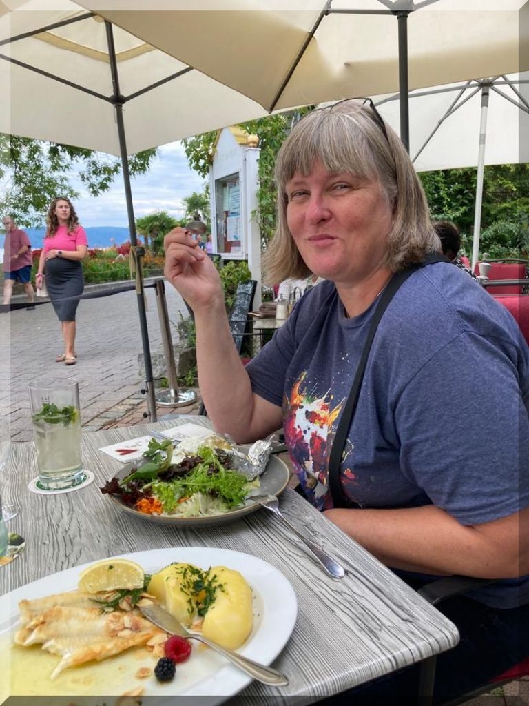 Steffi und Marianne haben in Überlingen zu Mittag gegessen. Marianne wollte unbedingt Egli Filets genießen.
