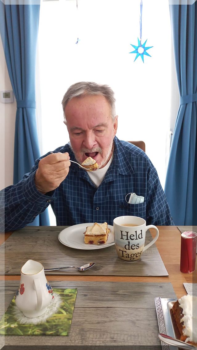 17:25 Uhr – Ich bin von meinem Kaffeeausflug bei A & M zurück. Manfred hat mich zu 15 Uhr abgeholt und wieder hergefahren. Es war ein wohltuender Nachmittag, den ich sehr genossen habe.