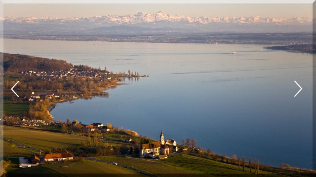 In den frühen Morgenstunden war der See vom Nebel verschluckt, aber bereits um 9 Uhr ist der Nebel aufgestiegen und zeigt den See von seiner schönen Seite. Nur die Schweizer Berggipfel sind noch in den Wolken.