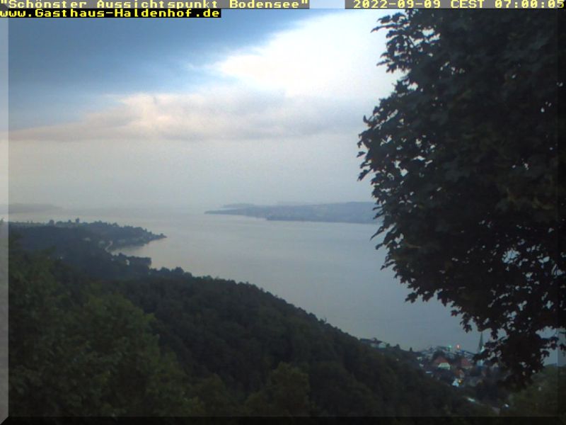7:15 Uhr – Wetterlage: Im Osten blauer Himmel – im Süden dicke Wolkenbänke bis zum See. Den Rest kann ich noch nicht einsehen.