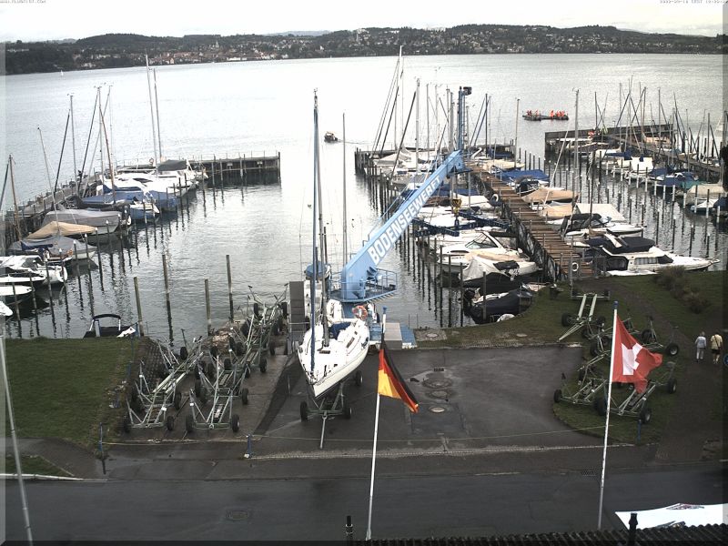 12:30 Uhr – Auf dem See zwischen Überlingen und Wallhausen sind sehr viele Optimisten und 420er zu sehen. die Jugend trainiert.