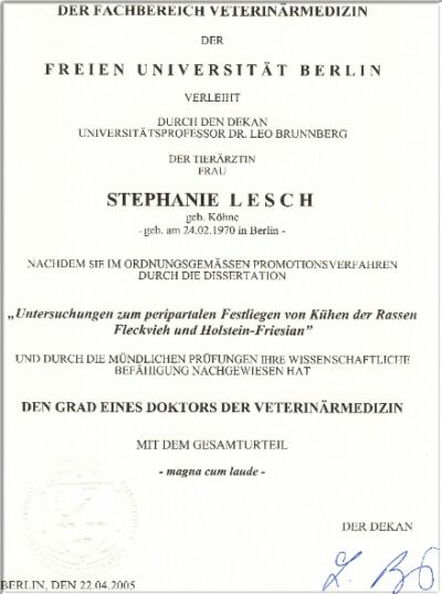 Meine Tochter, Doktorin der Veterinärmedizin,