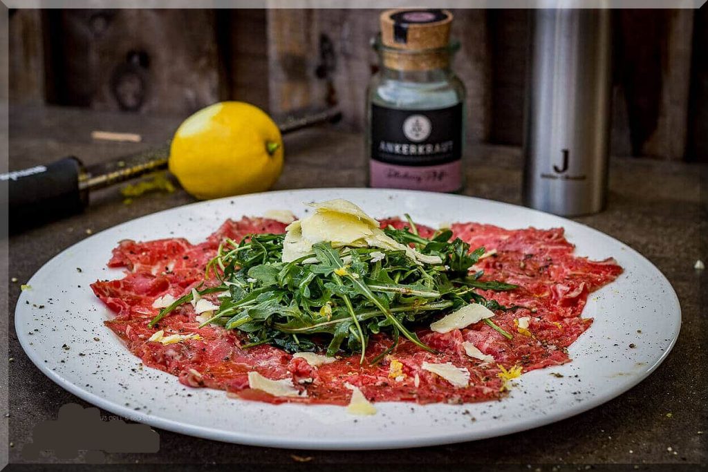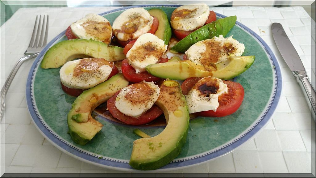 17:30 Uhr – Zum Abendbrot gab es für Marianne ein Rumpsteak und für mich ein Filetsteak, beides nach der 80°-Methode zubereitet. Erst in der heißen Pfanne kurz von allen Seiten angebraten und dann 40 Minuten in den auf 80° vorgeheizten Backofen. Dazu gab es Rosmarinkartoffeln und einen Salat aus Kirschtomaten, grüner Gurke , Feta-Käse, alles klein gewürfelt und Schnittlauch, Salz u. Pfeffer. Ich muss zugeben, dass ich mein Steak nicht rare verzehren konnte, es war etwas mehr als medium.