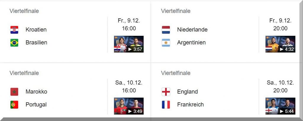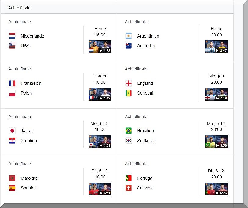 …………… und das sind alle KO-Spiele im Achtelfinale
