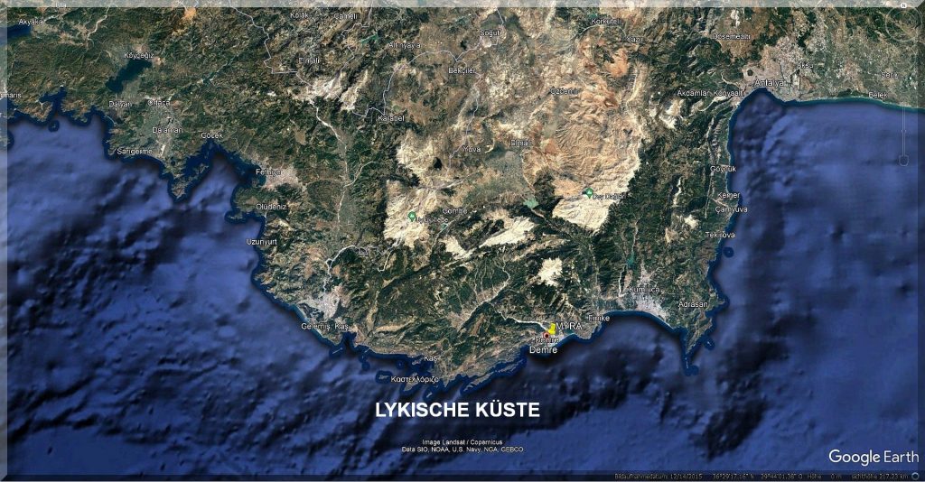 „……………… den heiligen Nikolaus gab es wirklich. Er war im 4. Jahrhundert Bischof der antiken Küstenstadt Myra, die heute unter dem Namen Demre bekannt ist und im Süden der Türkei liegt: