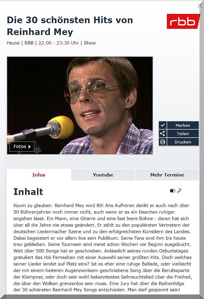 Peter Alexander, Dieter Thomas Heck, Heino, Gottlieb Wendehals etc.