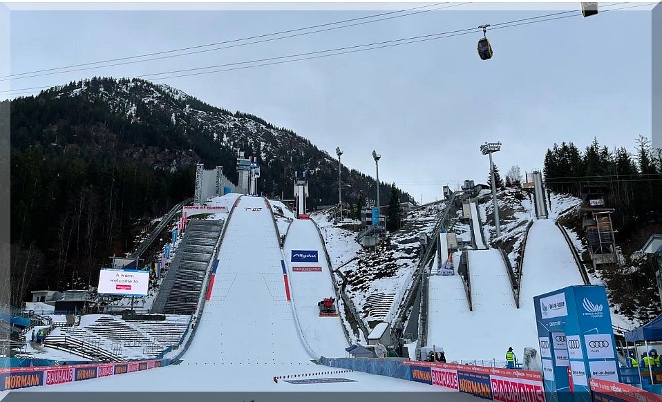 Beim Neujahrsspringen in Garmisch-Partenkirchen (31. Dezember und 1. Januar 2023) rückt die Große Olympiaschanze in den Fokus, ehe es über die Grenze nach Österreich geht.