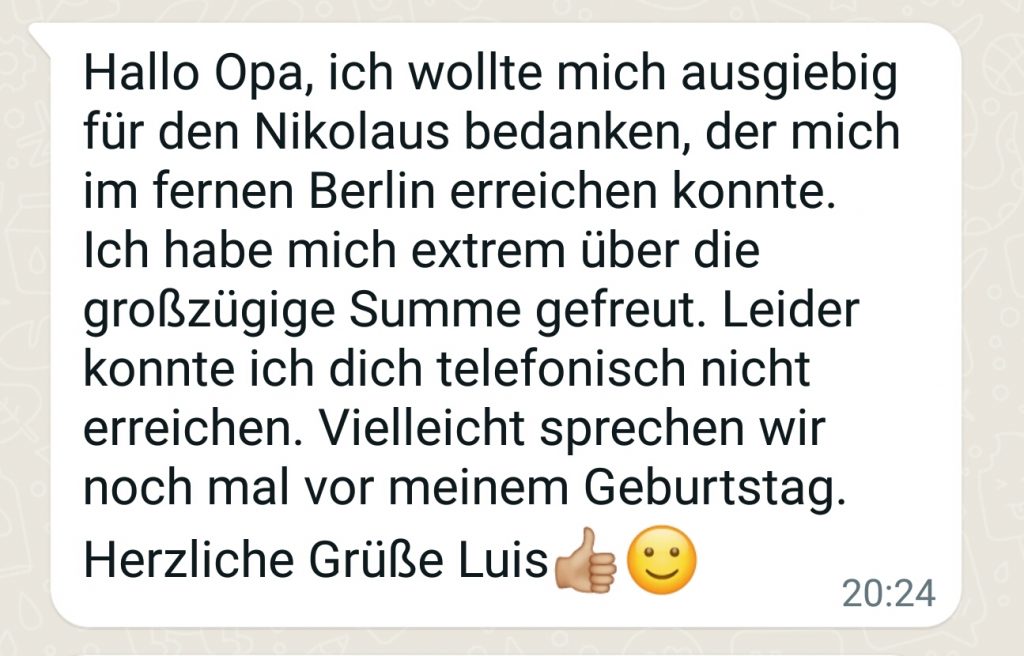 daran liegt, dass ich Weihnachten sicherlich noch erleben darf.