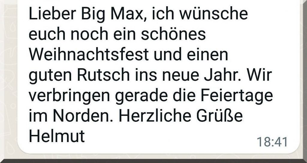 Lieber Siggi, ich danke Dir für die vielen Jahre, in denen Du mir mit Deinen Stollen immer einen Hochgenuss und Freude bereitet hast. Obendrein hat es mich immer an die Dresdner Stollen erinnert, die meine Mutter in meiner Kindheit zu Weihnachten gebacken hat. Es war die gleiche schmackhafte Rezeptur.