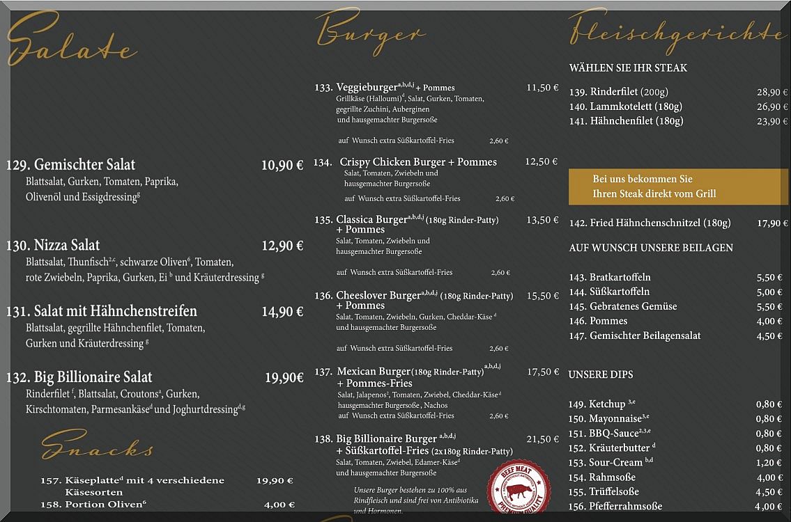 Böblingen: ….. Restaurant Big Billionaire seit 6. März – Burger, Lammkoteletts und Rinderfilets genießen wie ein Billionaire.