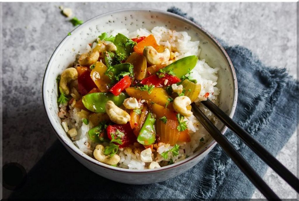 Der Tag ist trübe, da bleibt einem nichts anderes übrig, als sich auf das Abendessen zu freuen. Es wird Asiagemüse mit Pollo fino, Jasminreis und Teriyakisauce geben, nebst Cashew-Nüssen: