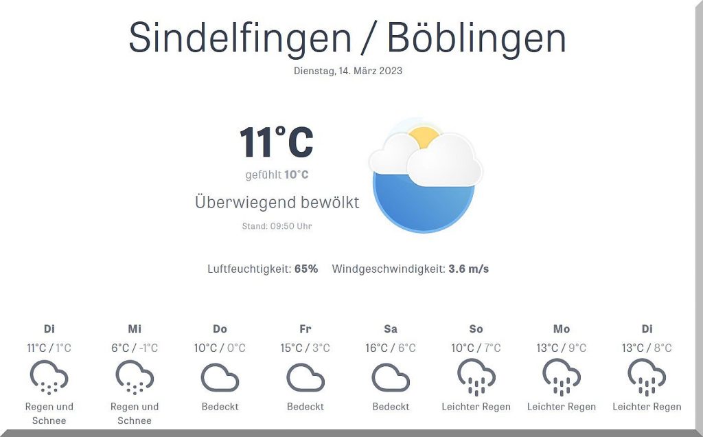Am Mittwoch erreichen die Schneefälle schließlich auch den Süden des Landes. Im Schwäbischen „Ländle“ wird dann mit 14 cm der meiste Neuschnee erwartet. Doch auch in den nördlichen Landesteilen geht Schneeregen nieder, da dort die Temperaturen ausnahmslos oberhalb des Nullpunktes liegen. Die Temperaturspanne umfasst minus 1 Grad in den Mittelgebirgen und 9 Grad am Bodensee.