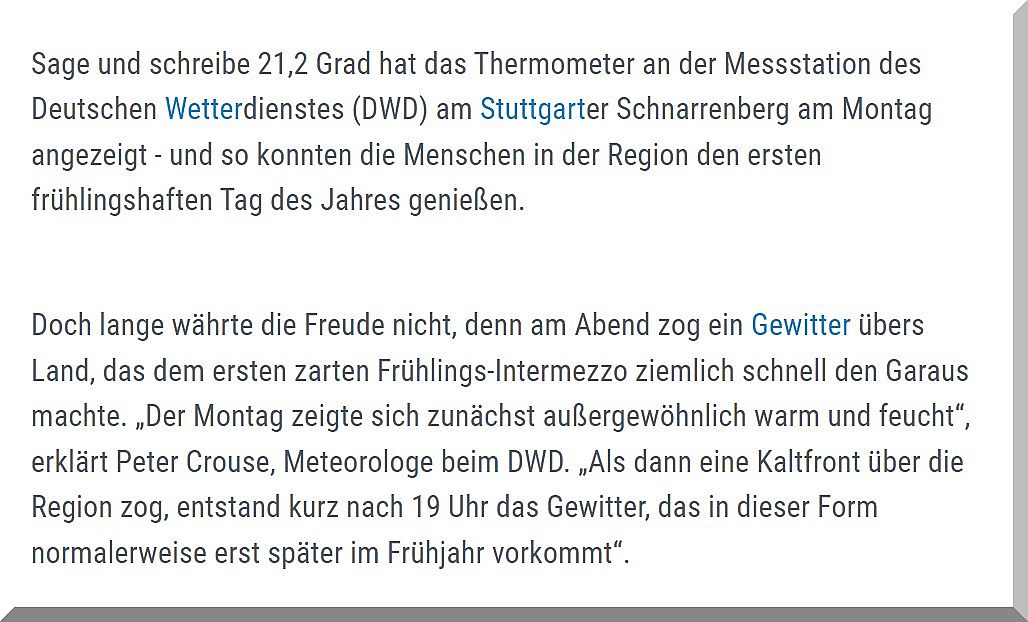 Mittwoch, 1. März: Frühlingsanfang der Meteorologen.