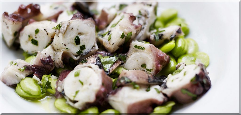 14 Uhr: Soeben habe ich als kleine Zwischenmahlzeit ein Glas marinierten Octopussalat von Gentile Gusto gegessen – ein Hochgenuss, genau so, wie ich Octopussalat liebe – sehr bissfest aber trotzdem wunderbar zu kauen – und der Geschmack einmalig. Den muss ich mir merken.