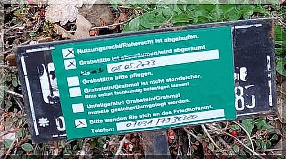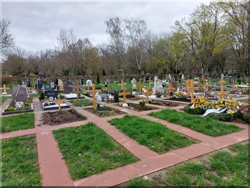 Auf dem mittleren Bild ist der Jahrgang 1997 beigesetzt worden, und mit dem grünen Schild werden diejenigen in die Verwaltung gerufen, die die Grabstelle für 25 Jahre angemietet hatten und wohl nicht mehr zu erreichen sind, um über den Fortgang der Grabstelle zu befinden.