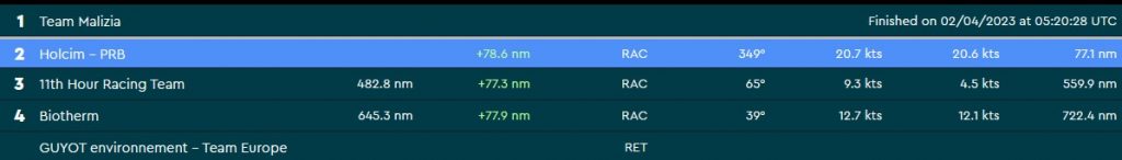 SY MALIZIA führt 9.9 Seemeilen vor ITAJAI mit 86.9 Seemeilen vor SY HOLCIM – PRB.