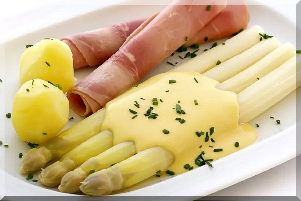 17:30 Uhr – Zum Abensessen gab’s wieder Griechischen Spargel mit Sauce Hollandaise und Pellkartoffeln: