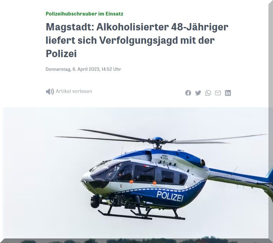 Zudem schaltete der 48-Jährige seine Beleuchtung am Fahrzeug aus. Zwischenzeitlich hatten mehrere Streifenwagenbesatzungen sowie ein Polizeihubschrauber die Verfolgung des Audi aufgenommen. Im weiteren Verlauf führte der Audi-Fahrer in verschiedenen Kurven Vollbremsungen mit seinem Fahrzeug durch, um mutmaßlich ein Auffahren der nacheilenden Einsatzkräfte zu provozieren.