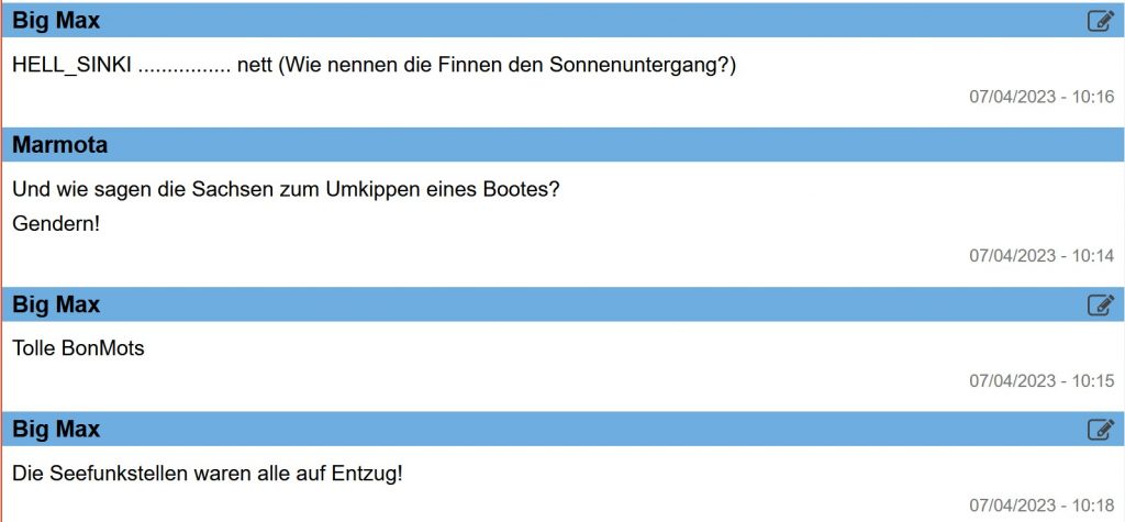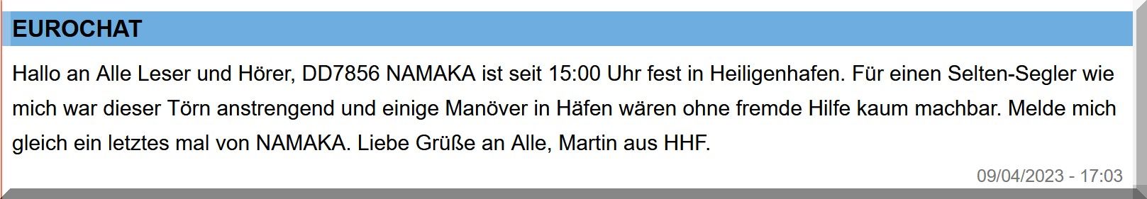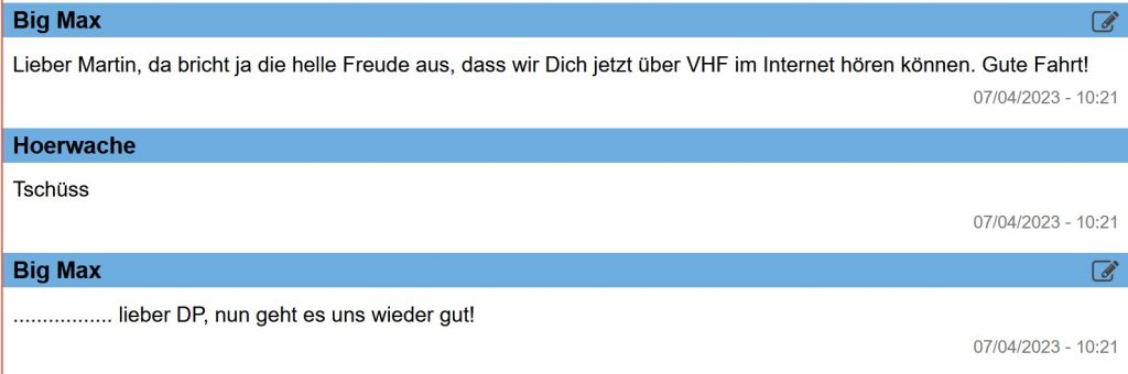 ich habe Deinen Mayday-Ruf sicherlich richtig einordnen können, als dramaturgischen Ausdruck für Deine Verkaufsaktivitäten. Bremen Rescue hätte Dir sicherlich einen Verweis ausgesprochen, wenn Du die PTT-Taste gedrückt hättest.