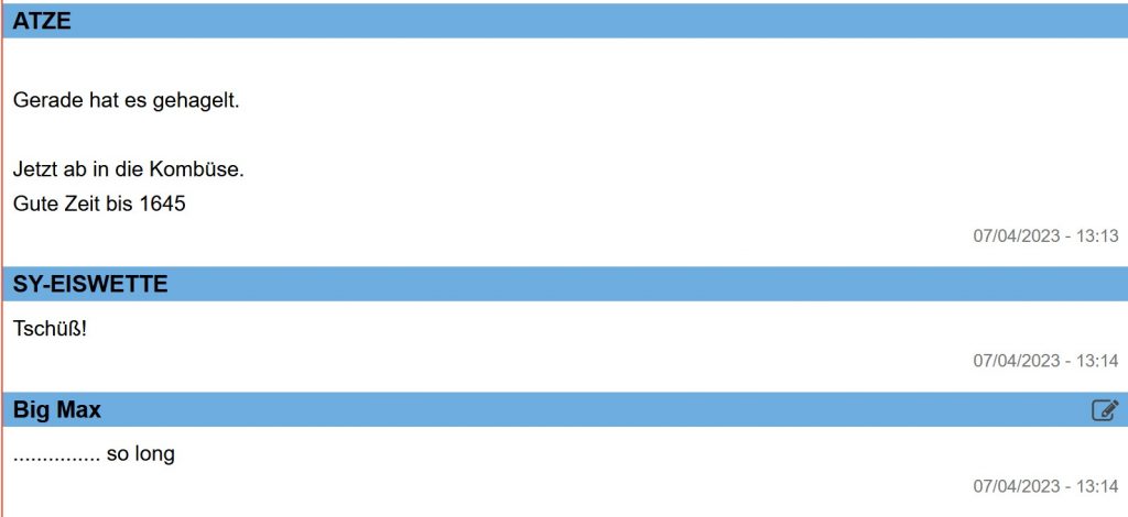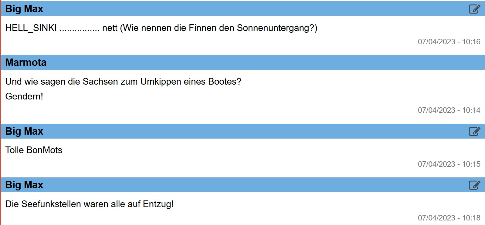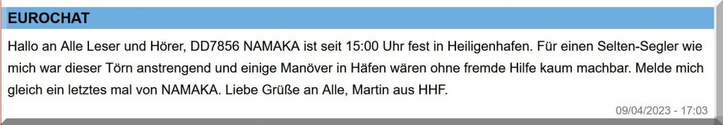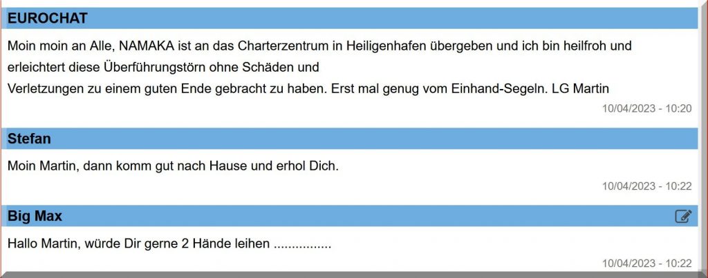 Für Dich hoffe ich, dass Du rasch einen interessierten Käufer finden wirst und Du Dich, ohne Ballast im Kopf, um neue Segelaktivitäten mit Deiner AFRICAN QUEEN kümmern kannst. Ich warte schon sehnsüchtig auf das erste AC-V-Log aus der Saison 2023.