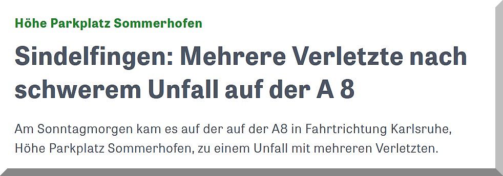 An der Anschlussstelle Maichingen fuhr der Audi-Fahrer von der Bundesstraße 464 auf die Pforzheimer Straße in Richtung Döffingen ab. Auch hier beschleunigte er sein Fahrzeug derart stark, dass er innerhalb der Ortschaft mit rund 130 km/h unterwegs gewesen sein dürfte.