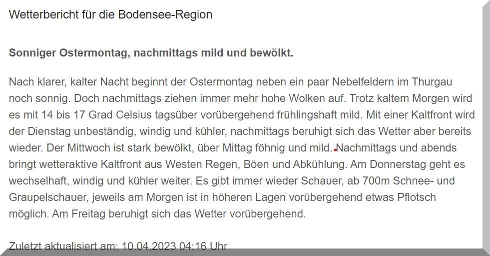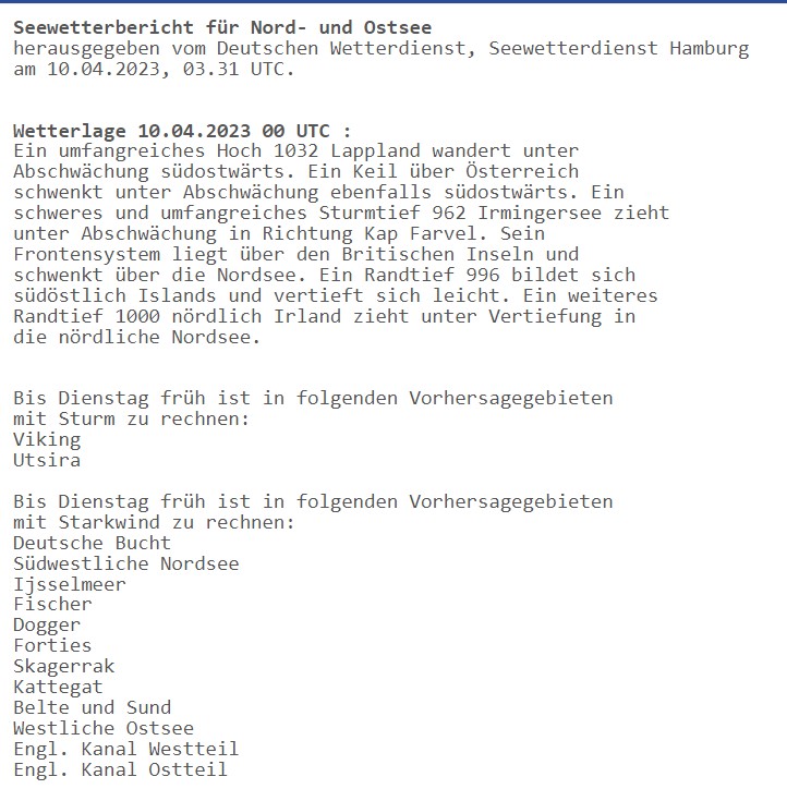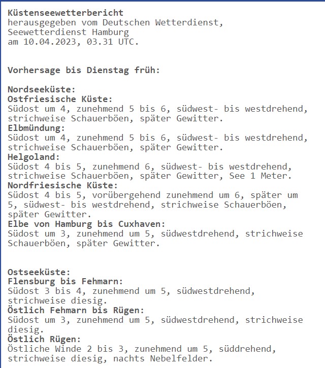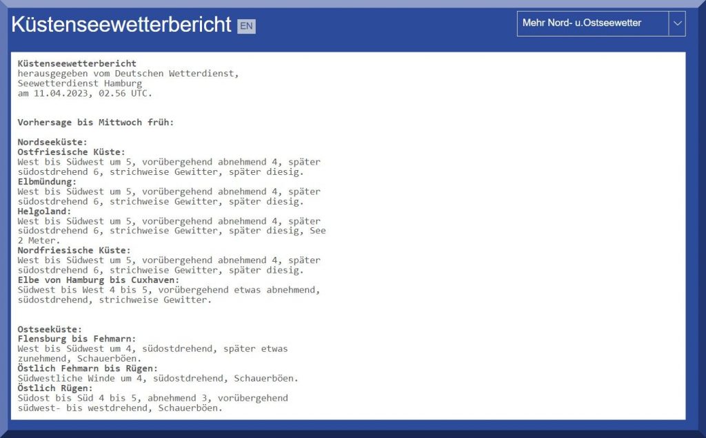 09:45 Uhr – Herr Schuler verliest den Seewetterbericht,