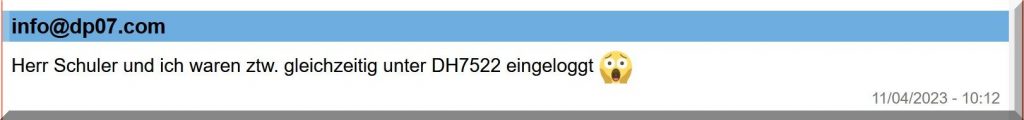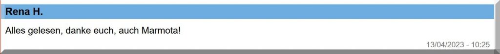 Damit war die Geschichte allerdings noch nicht beendet, aber das gebe ich hier nicht kund (Datenschutz).
