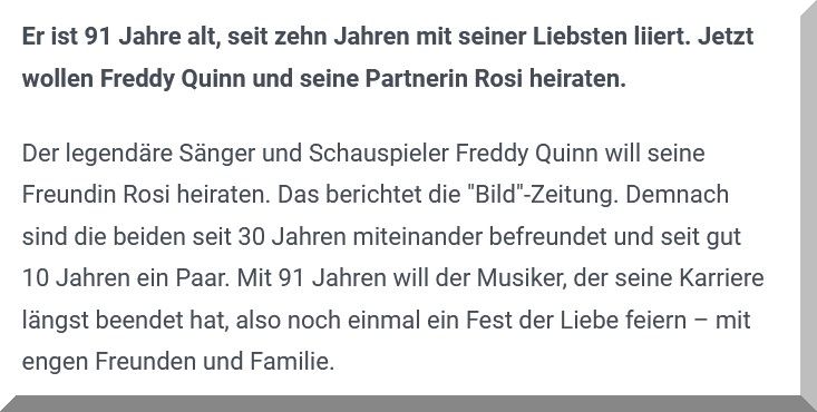 zu Ehren – Freddy Quinns ’Junge komm’ bald wieder’.