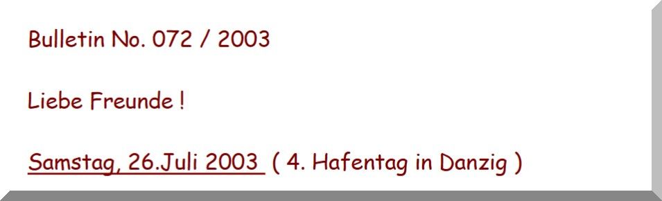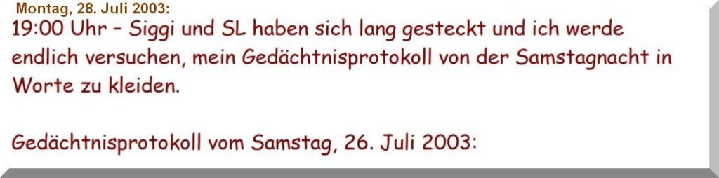Gedächtnisprotokoll am Montag, 28. Juli 2003 19 Uhr angefangen zu schreiben: