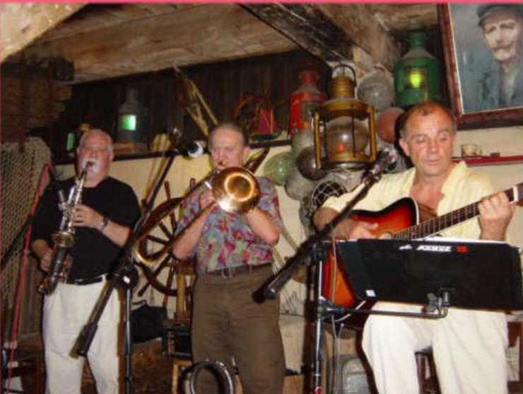 Drinnen spielte eine 3-Mann-Band jazzige Weisen ( Klarinette/
