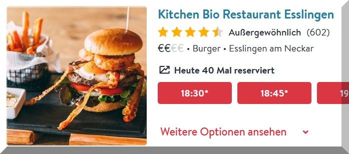 Der Blick auf die Speisekarte verrät das besondere Konzept des Restaurants, das in Esslingen einen Ableger hat. So viel wie möglich trägt ein Biosiegel, angefangen beim Gemüse über Dessert, Brötchen bis zu vielen der angebotenen Getränke. Der Umwelt zuliebe geht das Kitchen-Team noch einen Schritt weiter, und um einer Lebensmittelverschwendung vorzubeugen, werden fast alle Gerichte auf der Basis von zehn bis maximal 15 Produkten zubereiten. Das spart Ressourcen, so wird aus den Schalen der Biozitronen eigene Limonade hergestellt, auch mit dem Risiko, dass es mal keine der leckeren Limonaden gibt.
