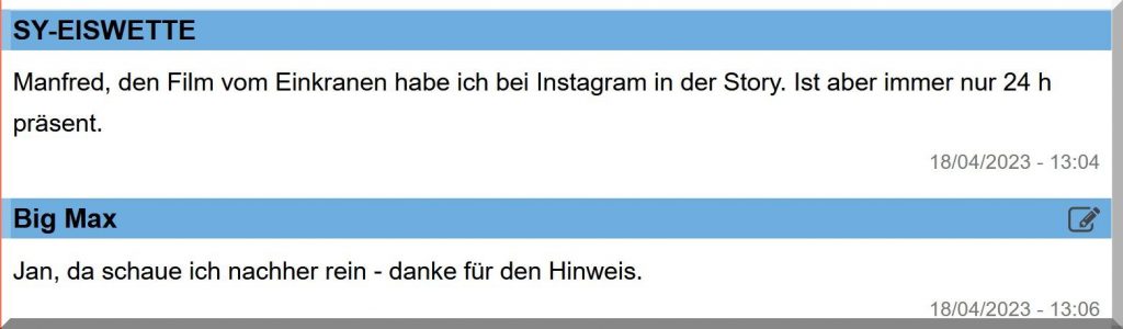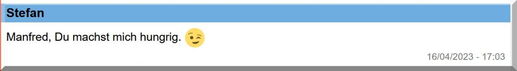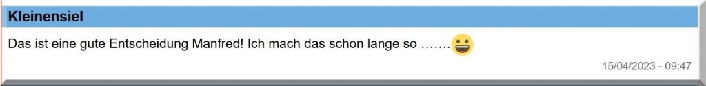 15 Uhr – Marianne hat soeben die Steuer CD für 2022 eingelegt. Sie hat sich über die Jahre als unsere digitale Steuerexpertin ausgebildet. Alle erforderlichen Unterlagen und Belege hatten wir im 1. Quartal schon gesammelt. Nun kann’s losgehen. Bin gespannt, welcher Saldo am Ende ausgewiesen werden wird. Ich rechne mit einer 3-stelliigen Nachzahlung.