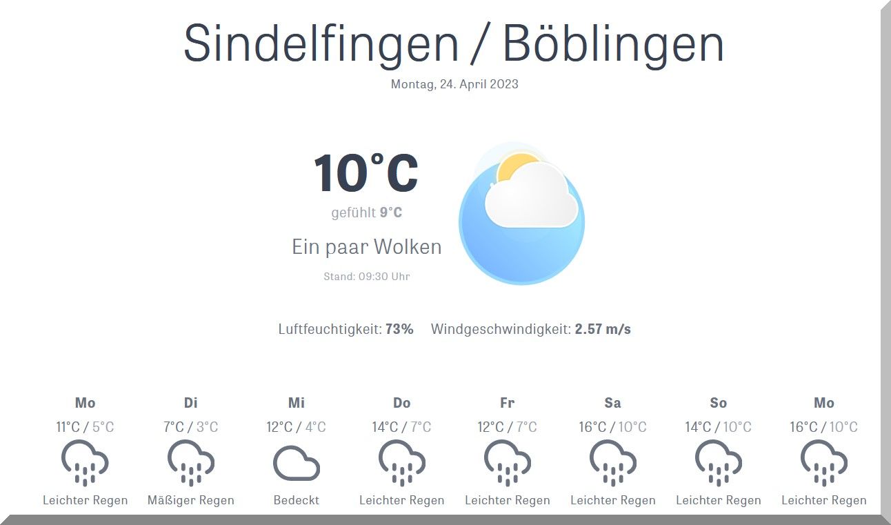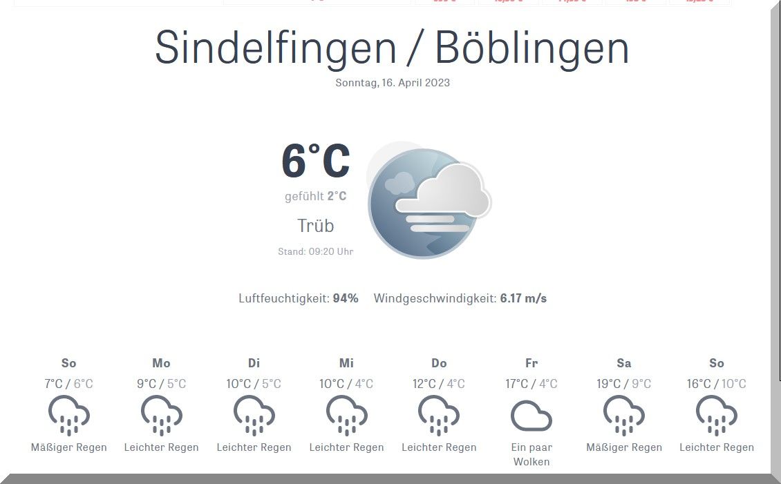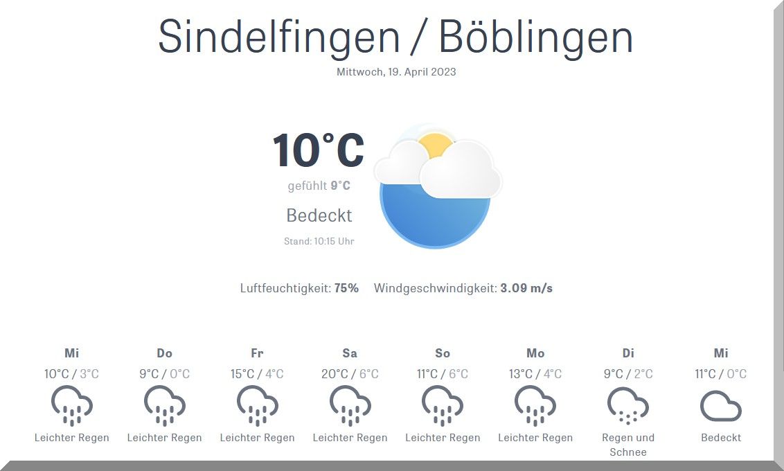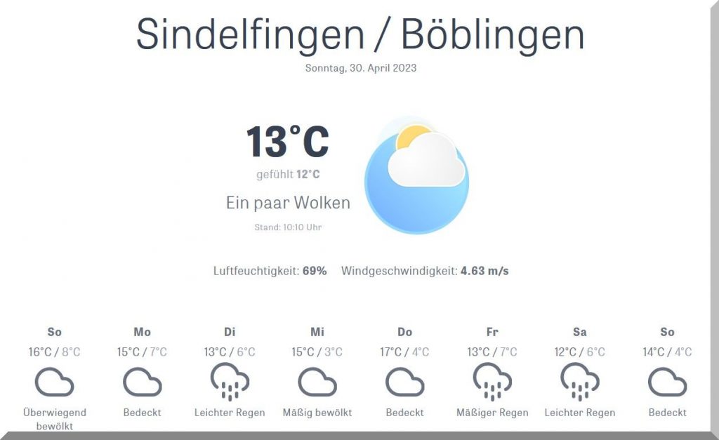 Kreis Böblingen. Draußen in den Mai feiern, das ist am Sonntag und Montagmorgen möglich, dann ziehen wieder Regenwolken auf, so die Prognose von SZ/BZ-Wetterexperte Michael Schatt.