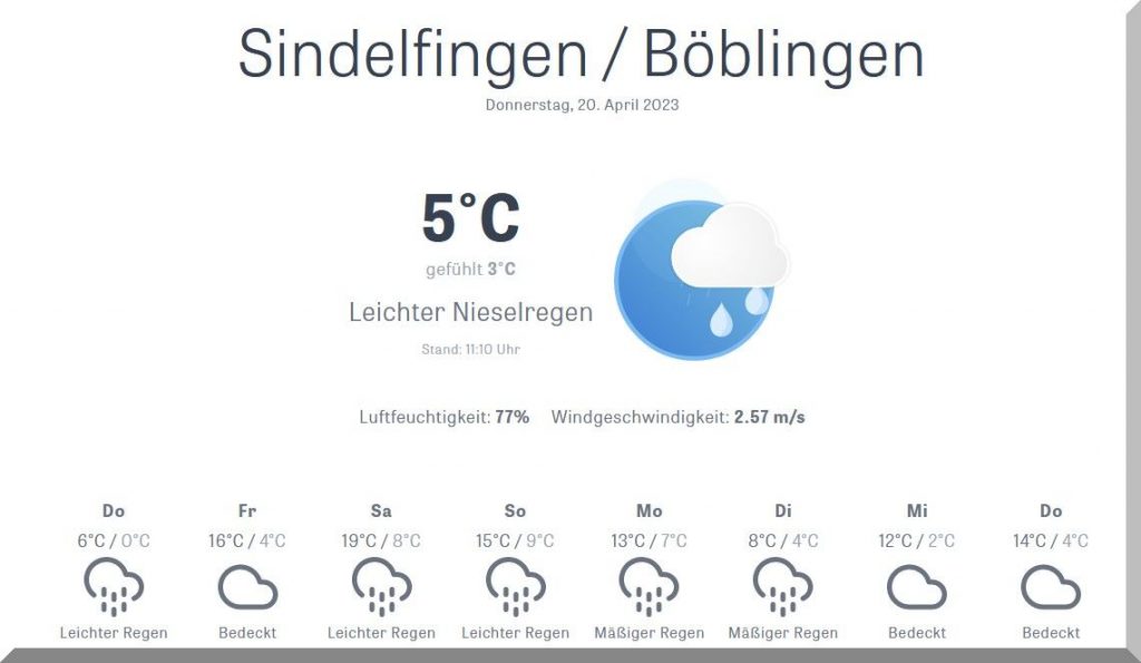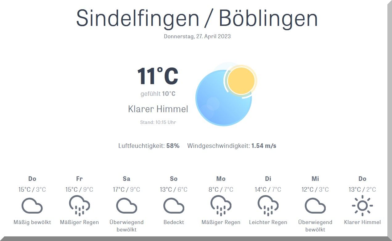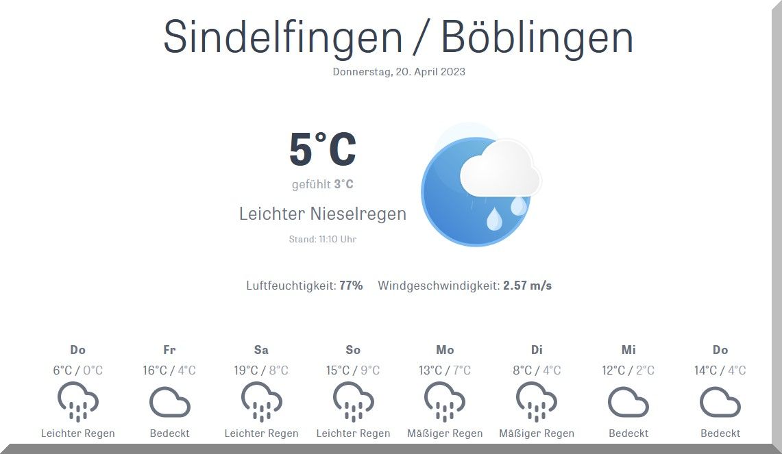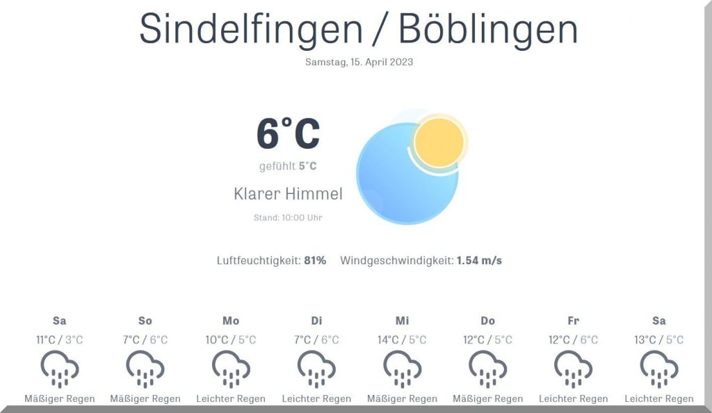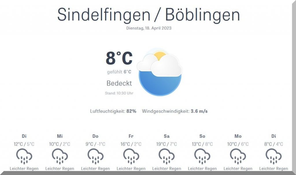 Kreis Böblingen. Draußen in den Mai feiern, das ist am Sonntag und Montagmorgen möglich, dann ziehen wieder Regenwolken auf, so die Prognose von SZ/BZ-Wetterexperte Michael Schatt.