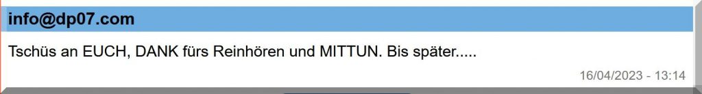 16:45 Uhr DP07-Seefunk – Rena ist am Mike und die Chatboxer im Internet in der Chatbox der DP07-Quasselkist.