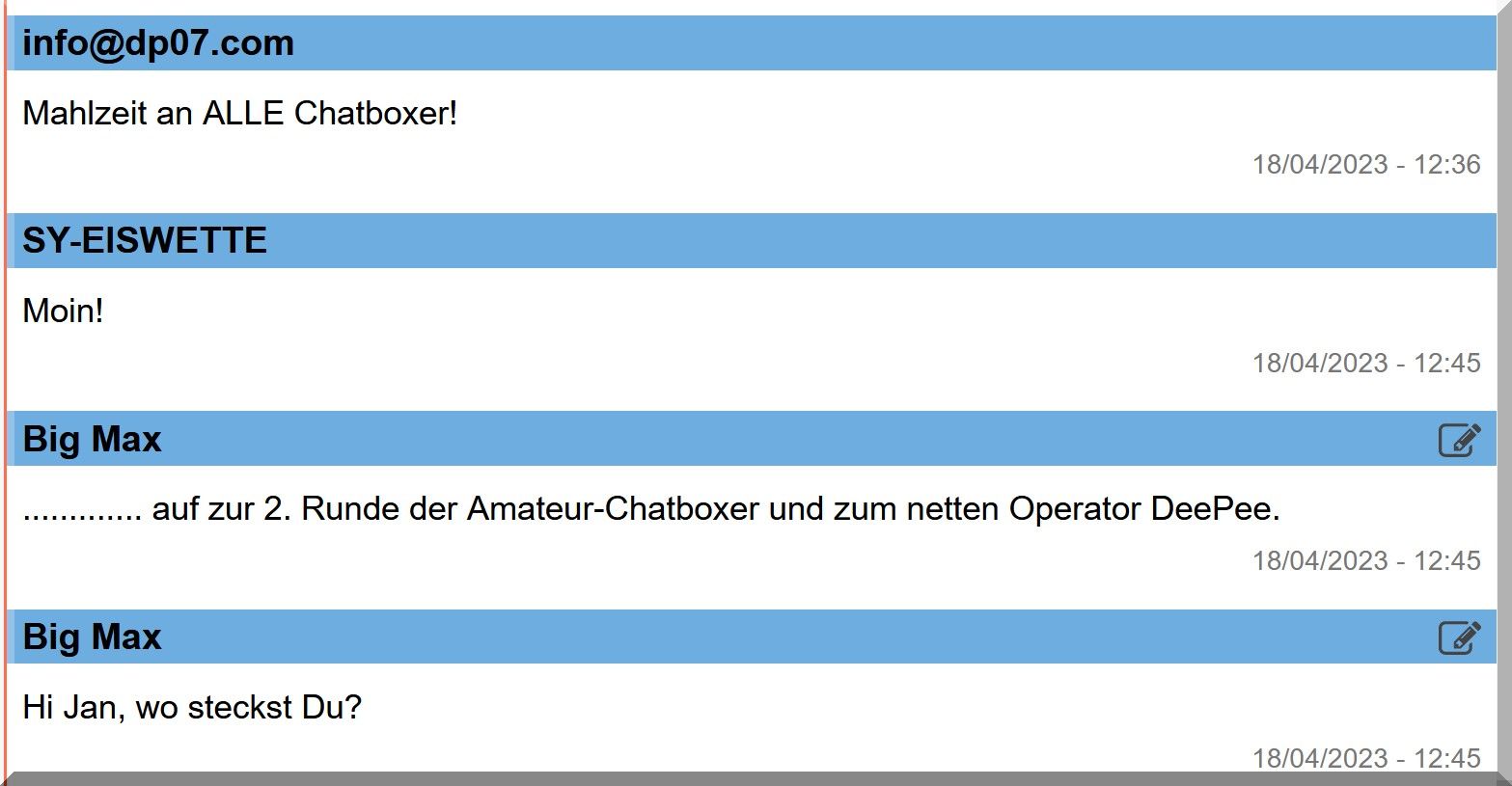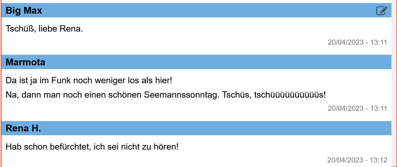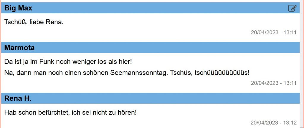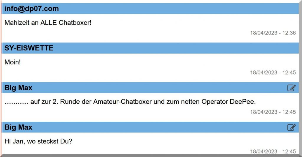 12:45 Uhr DP07-Seefunk – Rena ist am Mike und die Chatboxer im Internet in der Chatbox der DP07-Quasselkist.