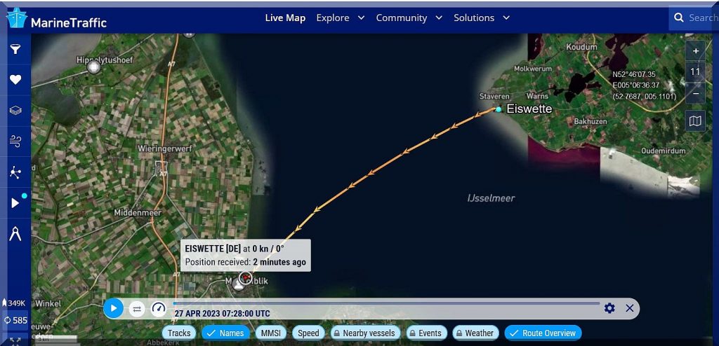 Schon gestern ist die SY EISWETTE von Workum/Stavoren nach Medemblik übers IJsselmeer gezogen: