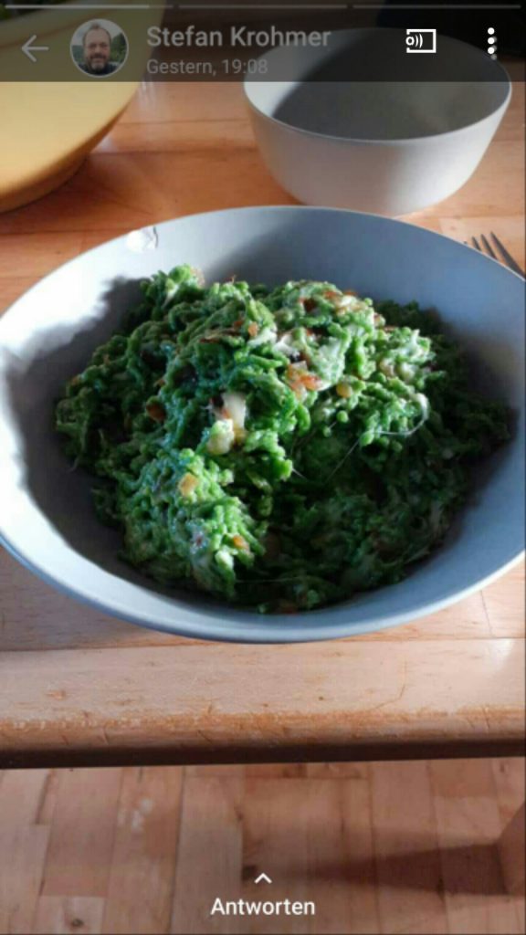 Vergessen hatte ich 1 Bund Frühlingszwiebeln mit hinein zu schnibbeln, weil wir das nicht eingekauft hatten.