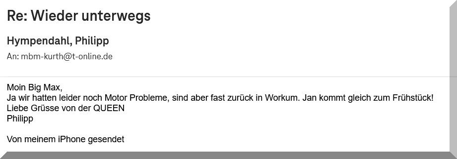 Na, das ist doch fein, dass Angela & Manfred wieder in der Heimat eingetroffen sind.