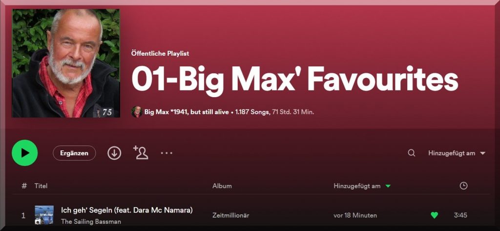 Das Lied gibt es auch auf Spotify und hat sofort den Weg in meine Playlist gefunden: