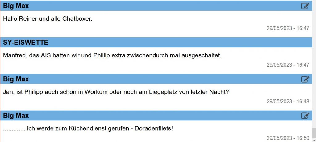 Ich verfolge ziemlich regelmäßig via YouTube Sam Holmes auf seinen Törns um die Welt. Derzeit hat er die „tückische“ (treacherous) Biskaya von Brest aus direkt überquert – doch schaut selbst: