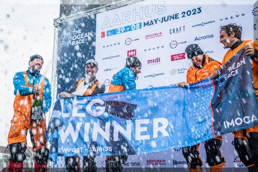 Skipper Charlie Enright’s smile was as bright as the early morning sun in Aarhus, Denmark on Monday morning as he led his 11th Hour Racing Team to a first place finish in leg 5 of The Ocean Race.