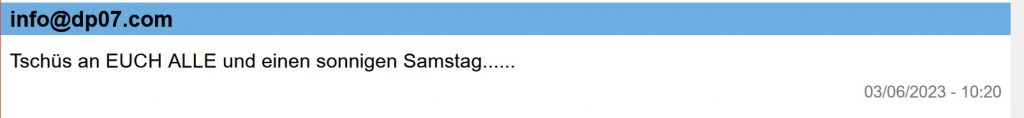18:40 Uhr – Soeben habe ich noch meinen eMail-Postkorb abgearbeitet und möchte Euch folgende eMail zur Kenntnis bringen: